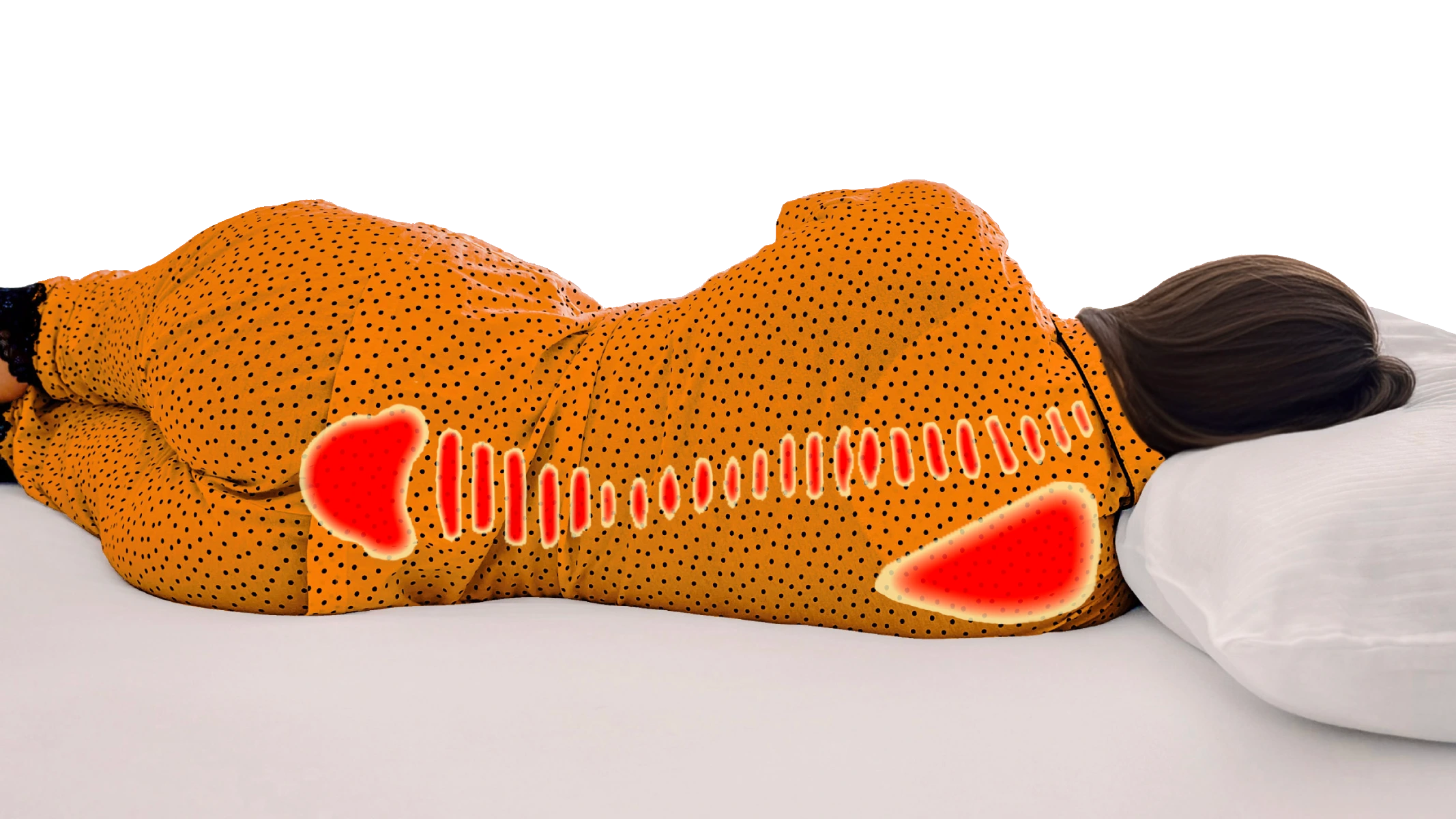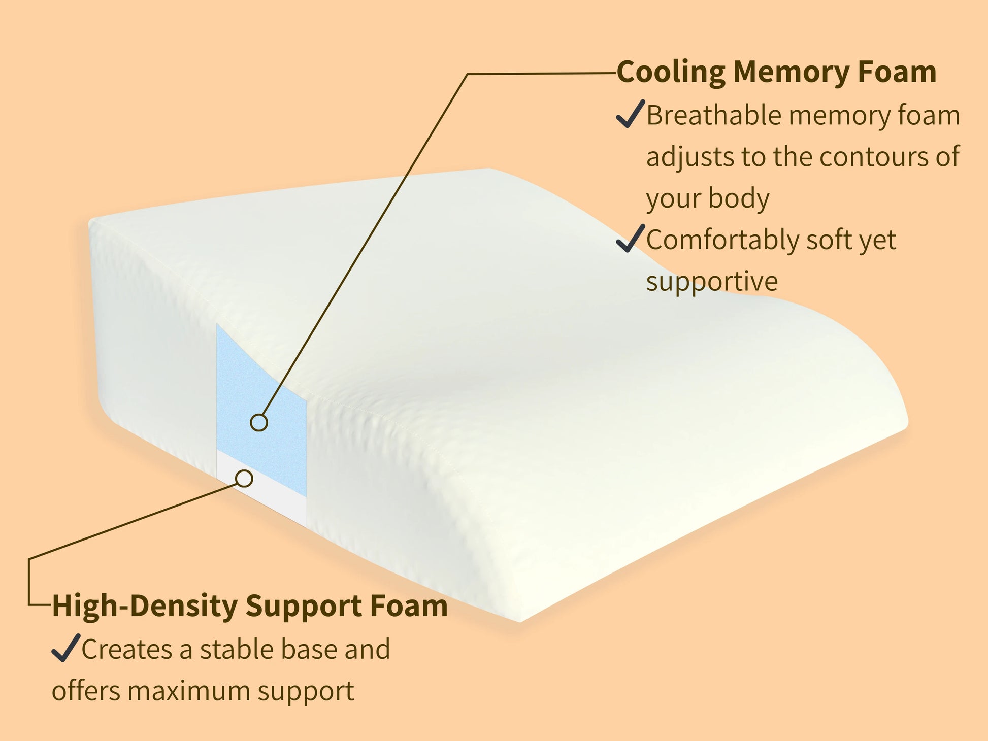 Neither — It's supportive without being hard. We tested dozens of foam densities to find the sweet spot: firm enough to keep your torso lifted and aligned, but soft enough to feel comfortable all night.