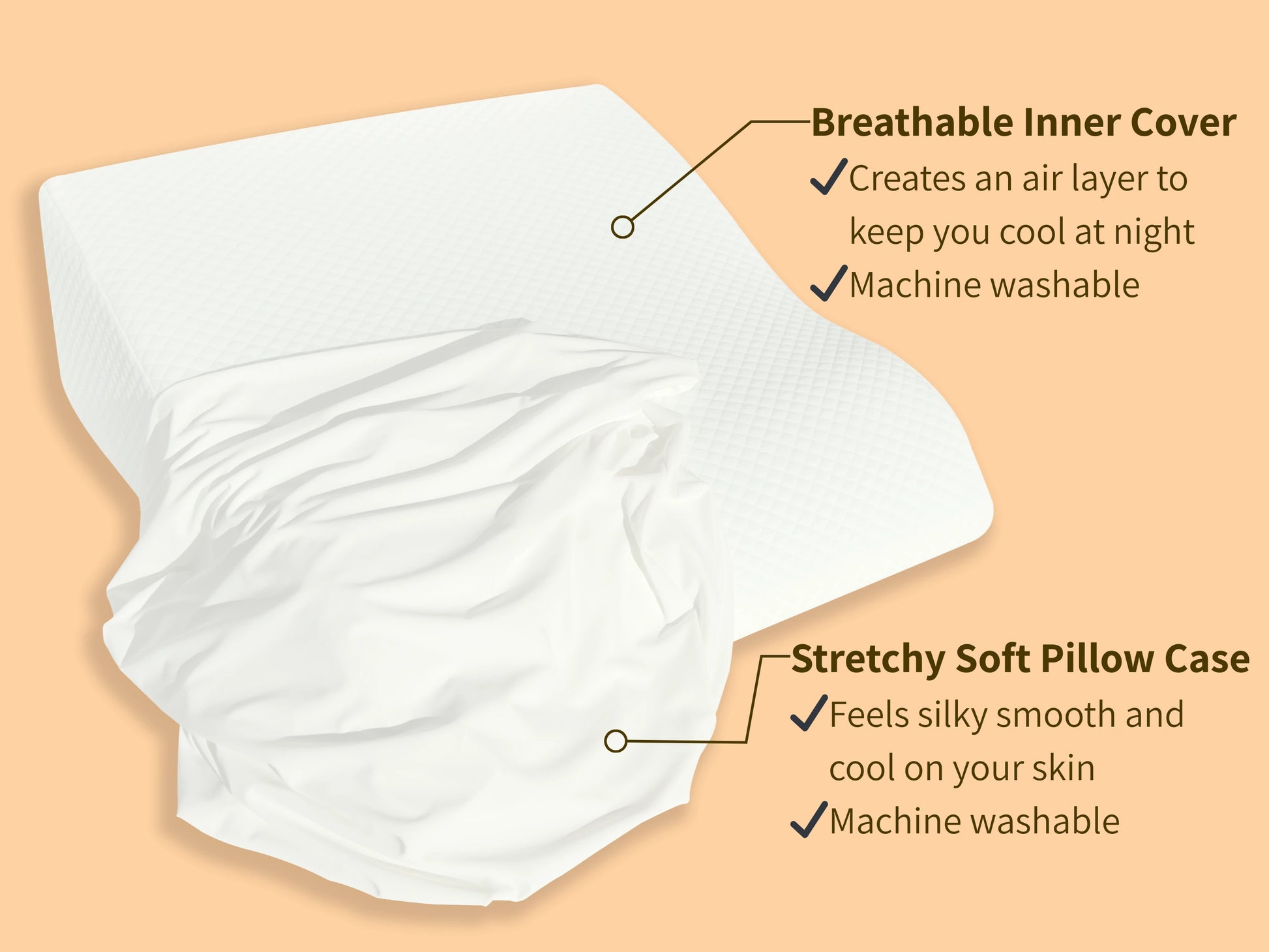 The inner pillow case is thick and has a quilted pattern, creating an air layer between you and the memory foam filling. It allows heat and moisture to escape from the pillow and your body, keeping your sleeping environment comfortable.
